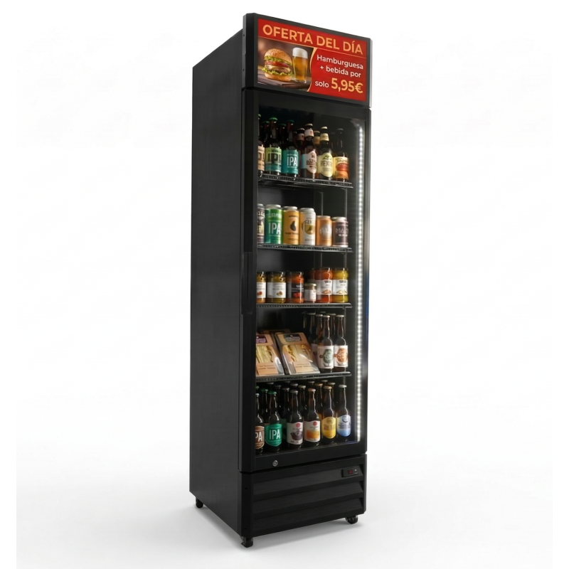 Nuevo Armario Expositor Refrigerado 360 litros color Negro y Cabezal Digital LCD 18,5" WIFI Línea PEKIN EVO360B Compre ahora para ahorrar