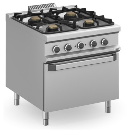 Horno a gas: e equipado con un quemador de 7 kW (10 kW para horno maxi) con llama autoestabilizada; regulación termostática de temperatura con válvula de seguridad y termopar; encendido piezoeléctrico del quemador.