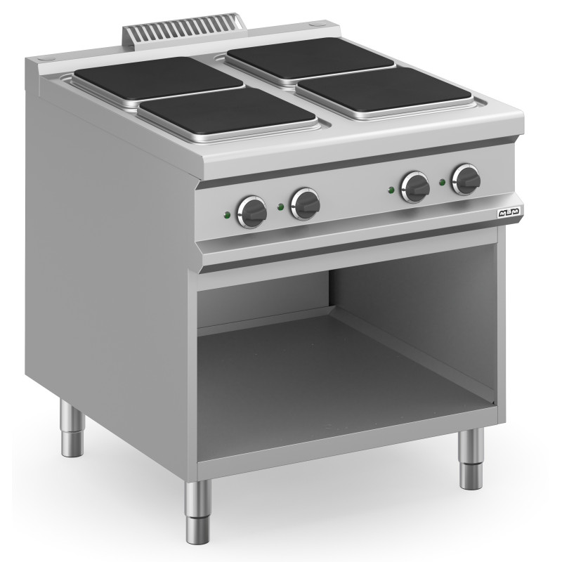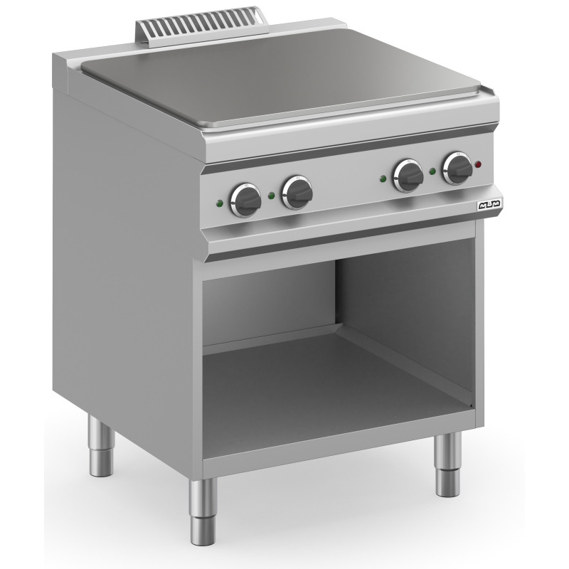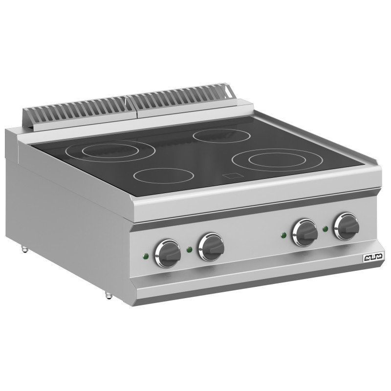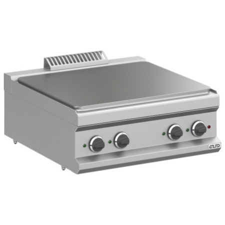 •En las versiones con funcionamiento eléctrico, la plancha de cocción, en acero dulce de 15 mm de espesor, es única pero presenta 4 zonas de cocción con control independiente.