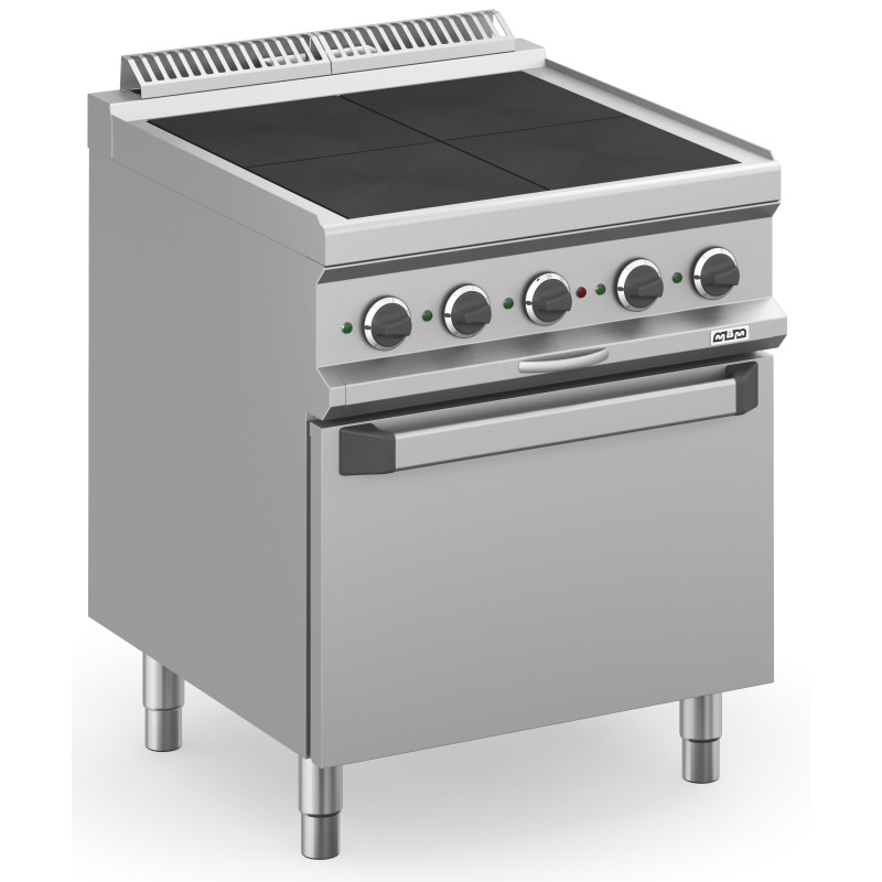 •Horno eléctrico: equipado con resisten-cias blindadas en acero inoxidable de 5,3 kW colocado en la parte inferior y en la parte superior de la cámara de cocción; regulación de temperatura termostática con doble control inferior / superior separado para una máxima flexibilidad de cocción.