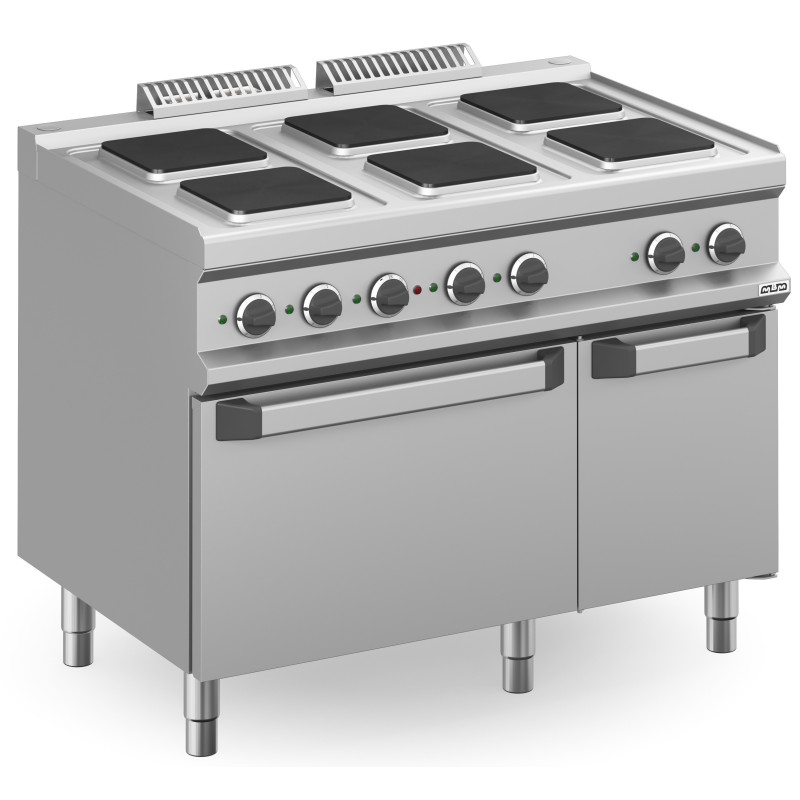 •Horno a gas: equipado con un quemador de 6 kW (8 kW para horno maxi) con llama autoestabilizada; regulación termostática de temperatura con válvula de seguridad y termopar; encendido piezoeléctrico del quemador.