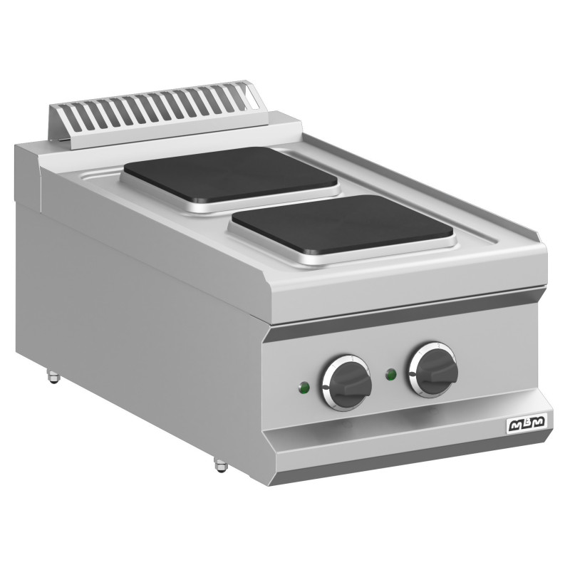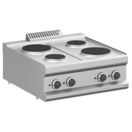 • Las placas en hierro fundido de rápido calentamiento con dispositivo de seguridad contra el sobre calentamiento están encastradas en la encimera “herméticamente”.