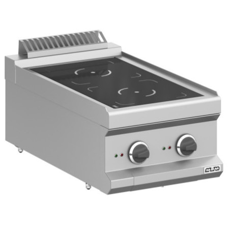 • La placa de cocción de 6 mm de espesor, se caracteriza por su superficie absolutamente plana, fácil de limpiar.