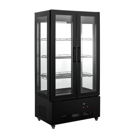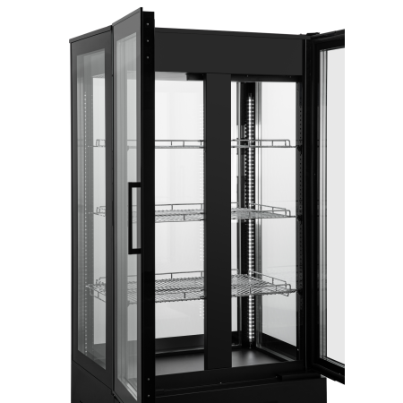 • Equipado con 4 estantes de cristal giratorios.