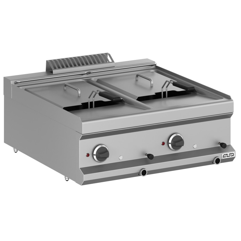 • Plano de trabajo, paneles laterales, paneles de mandos, y chimeneas en acero inoxidable.