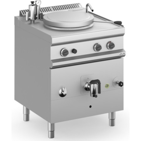 Versiones eléctricas: resistencias de inmersión controlados por perilla de 4 posiciones, presostato para el control automático del vapor en el espacio intermedio, válvula de seguridad con manómetro.